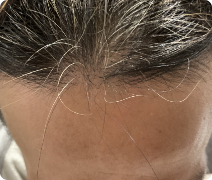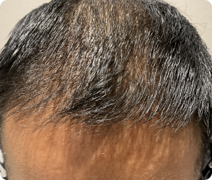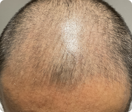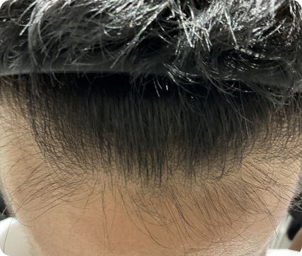 前医にて4か月間デュタステリド内服を行うも、効果が乏しく当院来院された患者様です。デュタステリド内服に加え、当院オリジナルのミノキシジル内服、発毛エクソソーム注射、メディカルヘッドスパの併用で、高い発毛効果を得られました。