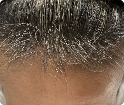 10年以上前から他院にてデュタステリド内服、2年前に植毛も行っていた患者様です。効果が伸び悩んできたとのことで当院を受診されました。メディカルヘッドスパ、発毛PRP手打ちの併用でしっかりとした発毛がみられ、ご本人様も満足度の高い治療となりました。